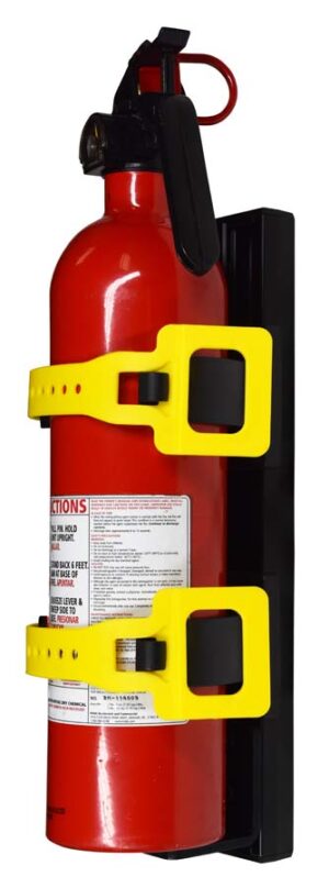 The 3lb Extinguisher Mount is designed to provide a secure mount for small 3lb extinguishers or any extinguisher up to 3.5” in diameter. The Oxygen Bottle/5lb Extinguisher Mount is designed to provide a secure mount for D style oxygen bottles, 5lb extinguishers, or any other cylindrical item up to 4.5” in diameter. A self contained bracket with adjustable lock straps for easy use.